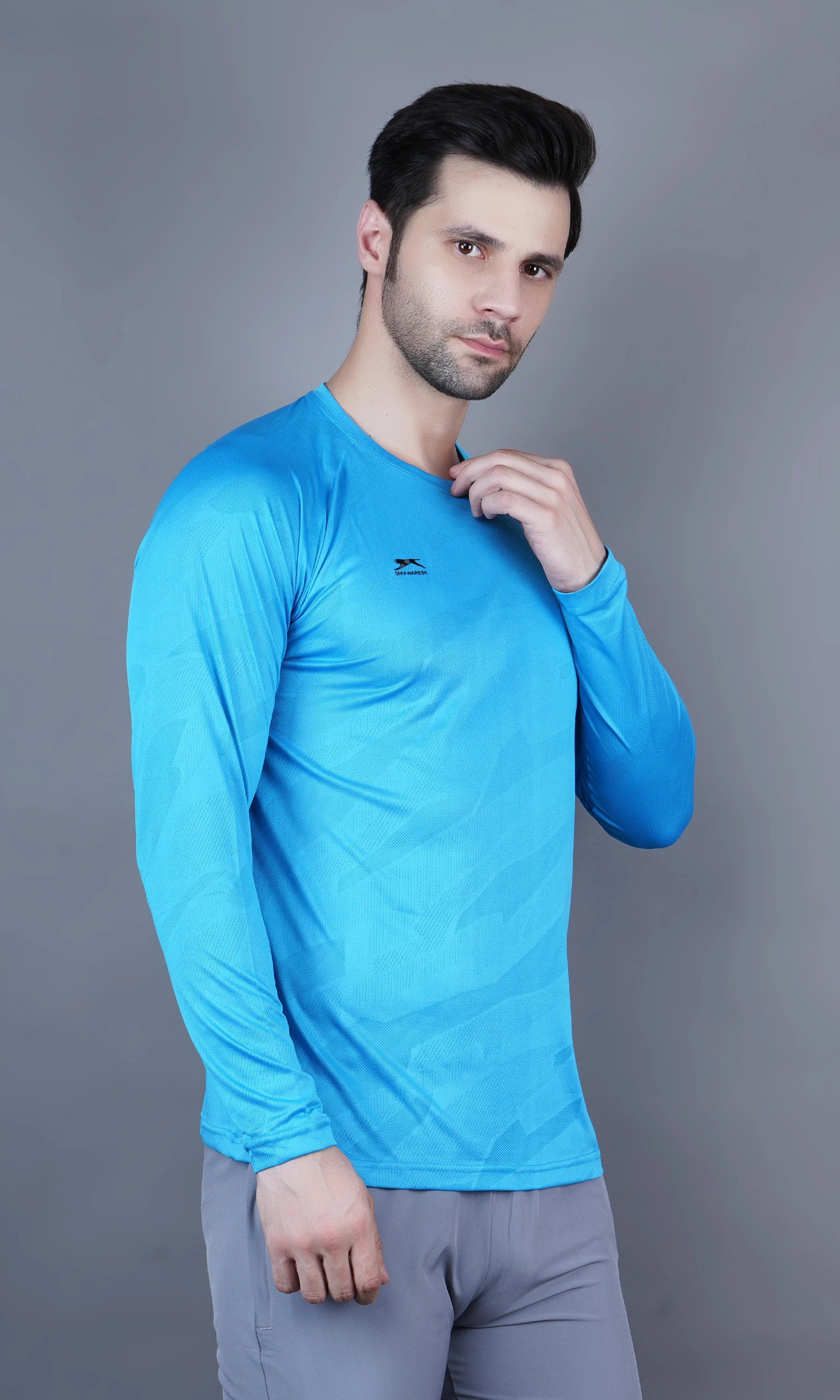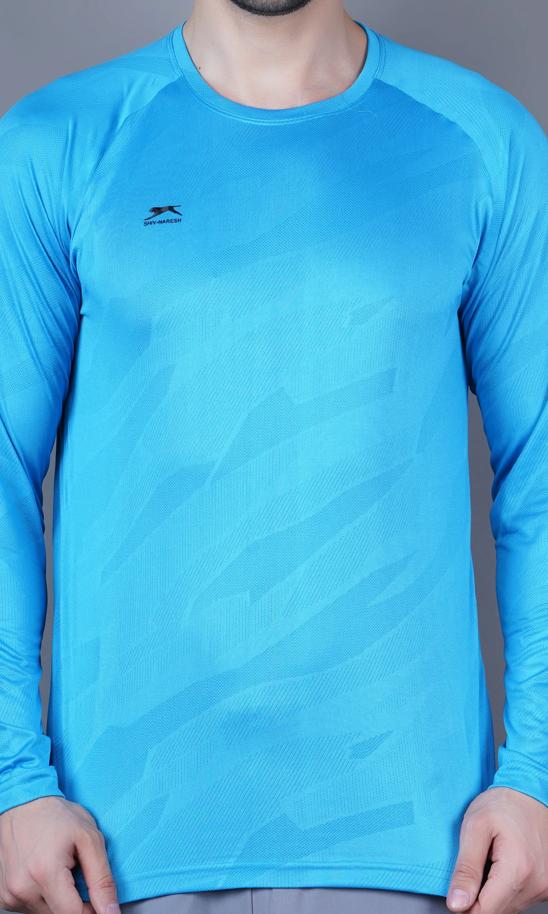 Stay comfortable and stylish with the Shiv Naresh Jacquard T-shirt, featuring a round neck and full sleeves for a sleek athletic look. Made with breathable jacquard fabric, this T-shirt offers a textured feel and moisture-wicking performance—perfect for workouts or casual wear.