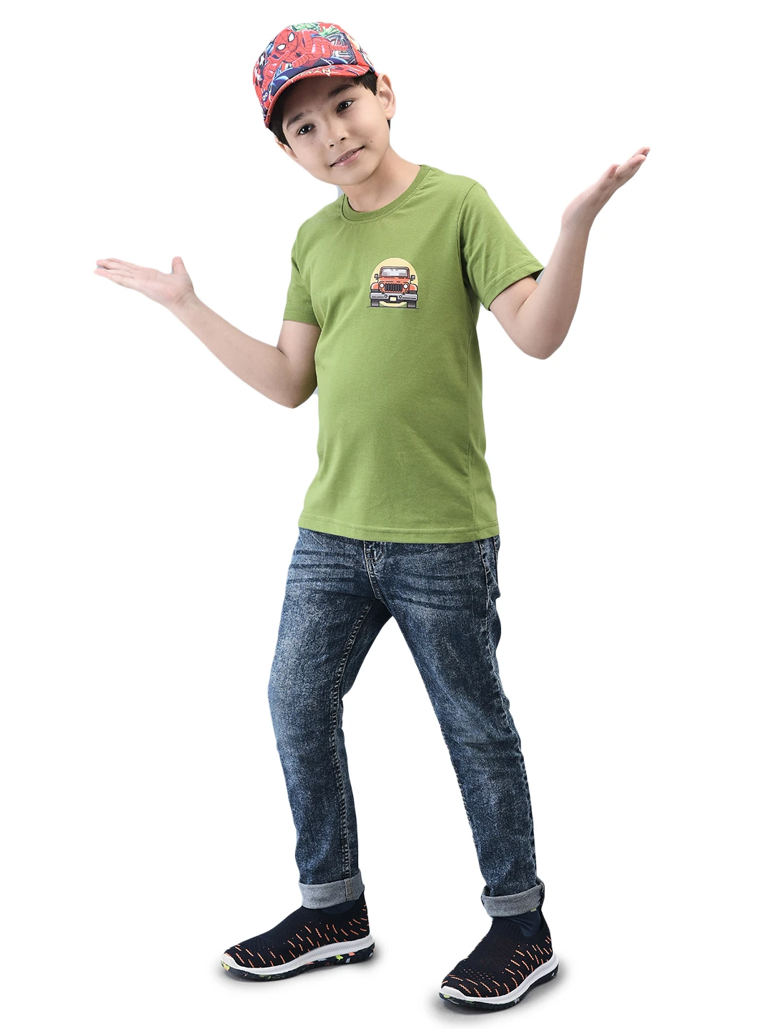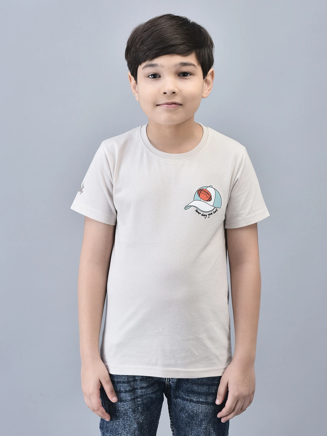 Introducing our Kids' Half Sleeve T-Shirt, crafted from 100% cotton-rich fabric for ultimate comfort. This t-shirt features breathable and anti-static properties, ensuring your child stays cool and comfortable all day. The stylish graphic sticker adds a trendy touch, boosting confidence and making this tee a must-have for any kid's wardrobe.