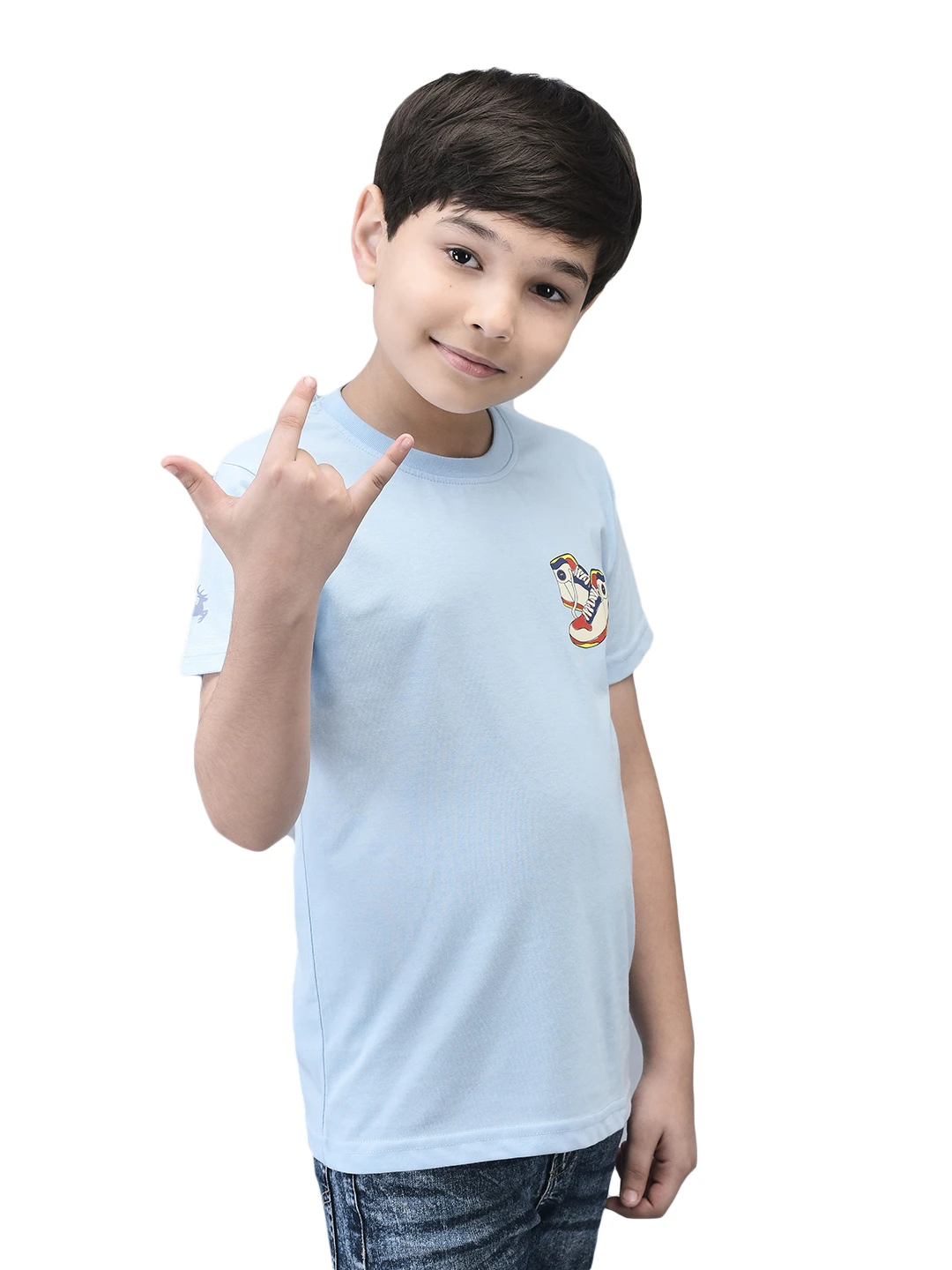Introducing our Kids' Half Sleeve T-Shirt, crafted from 100% cotton-rich fabric for ultimate comfort. This t-shirt features breathable and anti-static properties, ensuring your child stays cool and comfortable all day. The stylish graphic sticker adds a trendy touch, boosting confidence and making this tee a must-have for any kid's wardrobe.