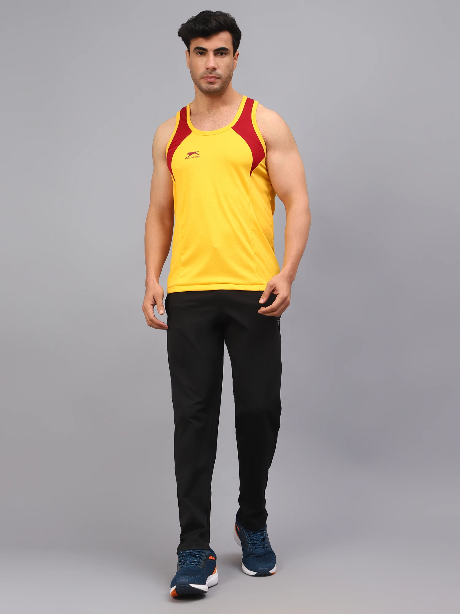 Train smart and hard in our performance staple singlet. Crafted in ultra lightweight breathable fabric.The smart cuts and fit give you the highest range of motion and keep you cool and comfortable throughout your sweating activities.