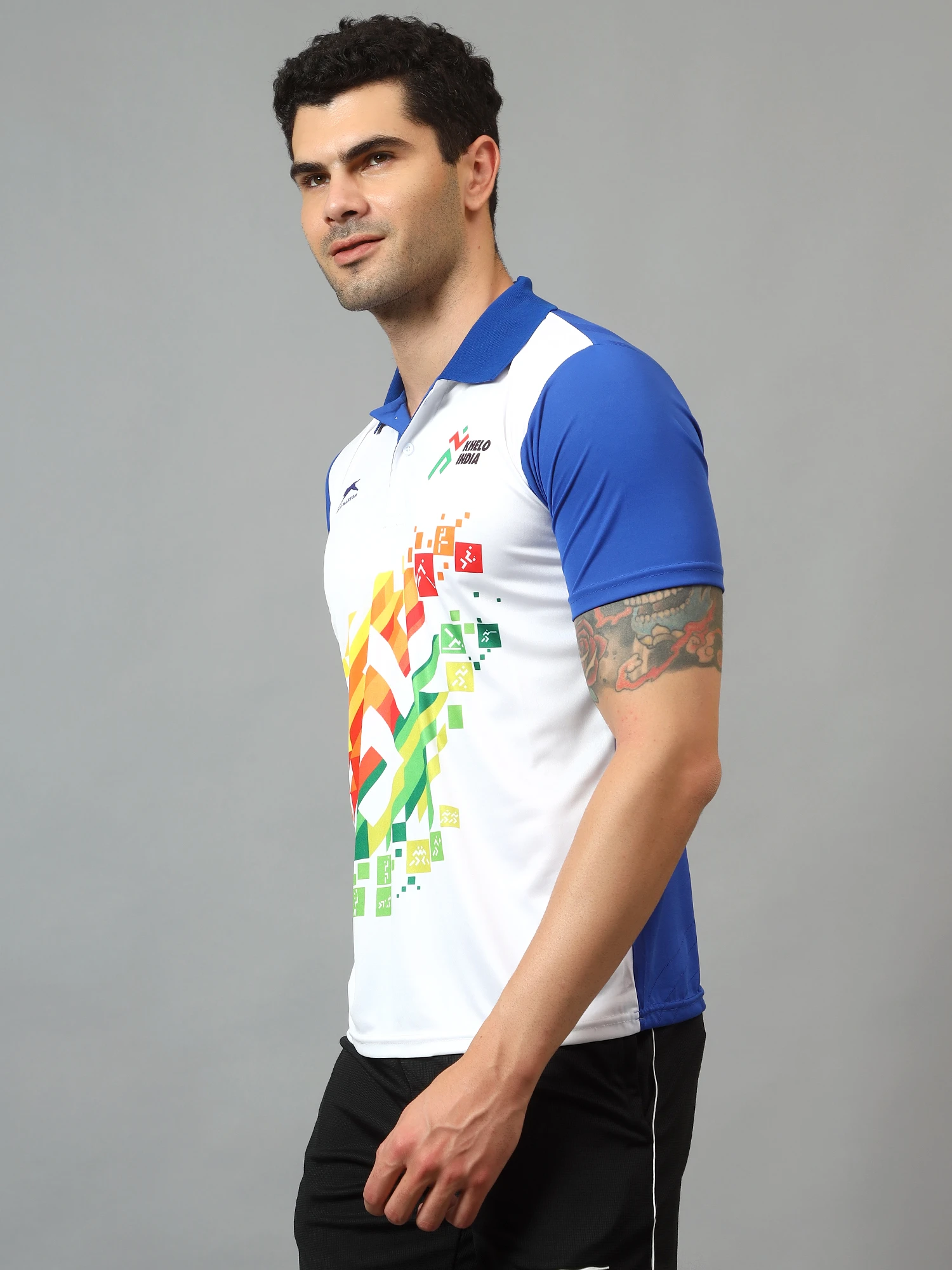 Introducing the Khelo India Elite Performance T-shirt, meticulously crafted from premium 100% polyester fabric, embodying the spirit of athleticism and excellence. Inspired by the dynamic energy of the Khelo India initiative, this T-shirt is designed to empower athletes to reach new heights in their sporting endeavors.