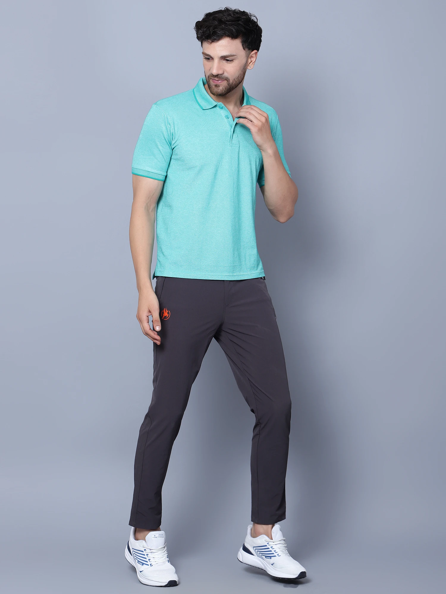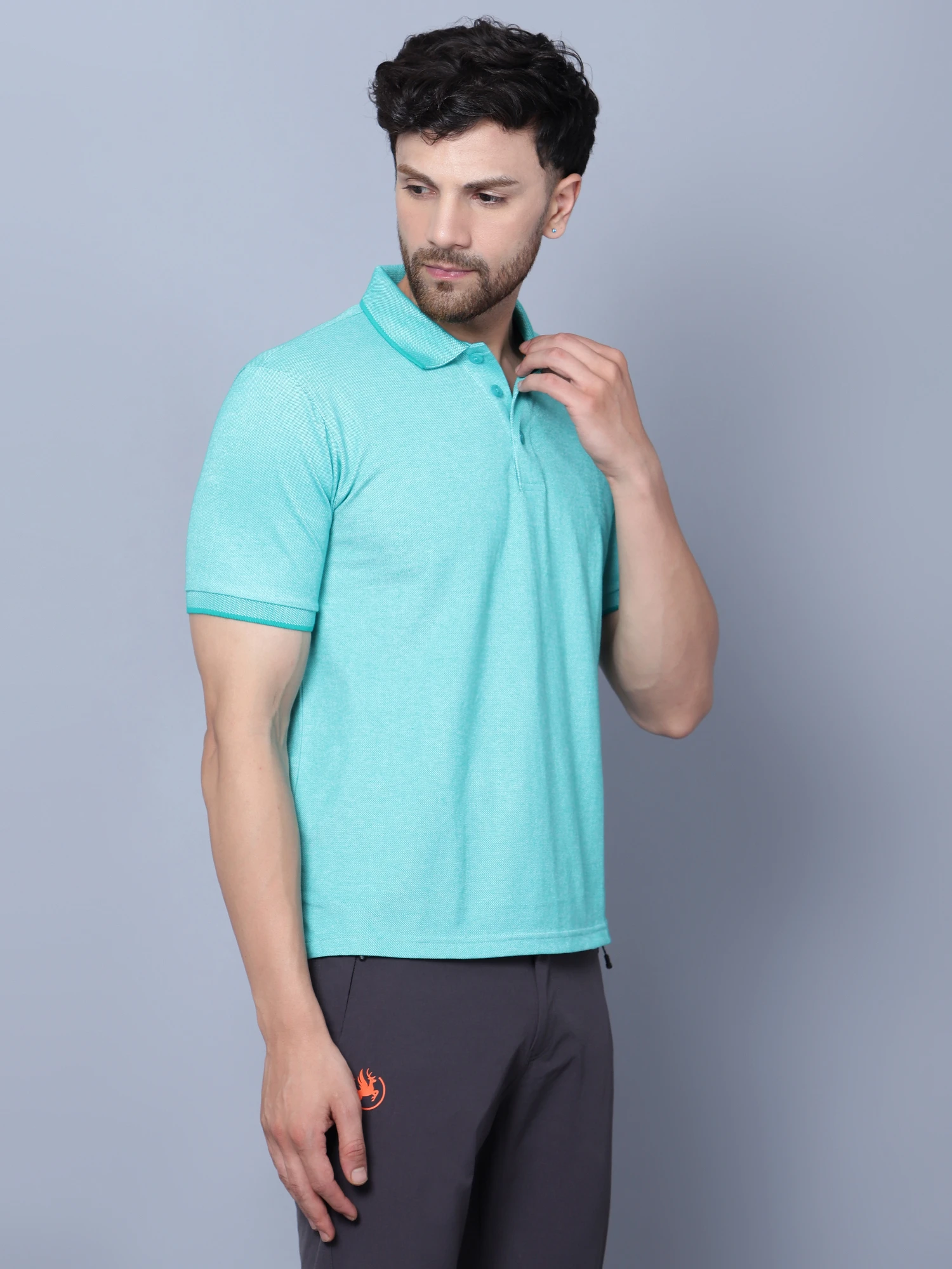 This athleisure polo, crafted from Kooltex yarn, is designed to transport sweat to the fabric’s outer surface, making it ideal for both gym and office wear. It adapts to your body temperature, maintaining optimal comfort by regulating body heat. The breathable fabric enhances performance during physical activities with advanced moisture management technology.