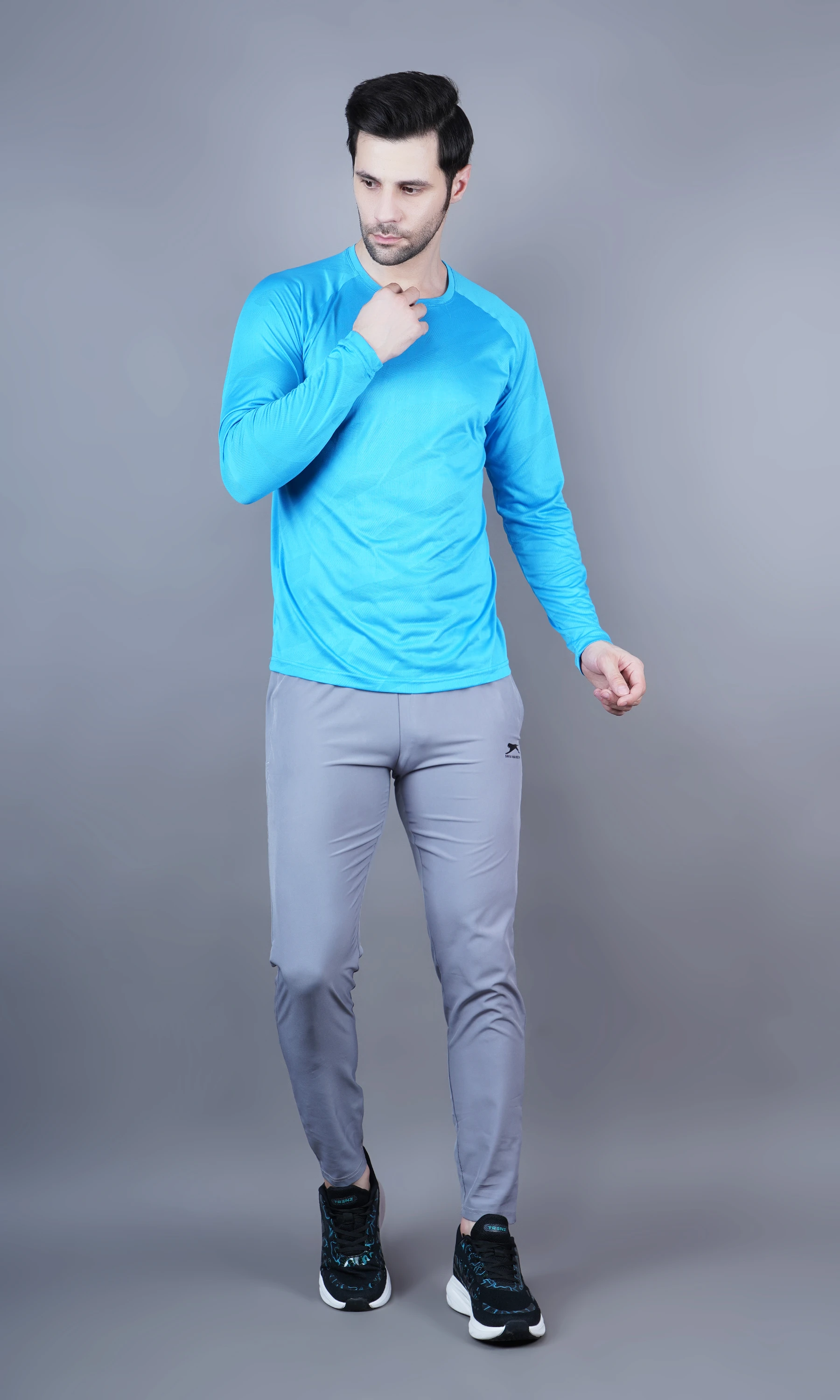 Stay comfortable and stylish with the Shiv Naresh Jacquard T-shirt, featuring a round neck and full sleeves for a sleek athletic look. Made with breathable jacquard fabric, this T-shirt offers a textured feel and moisture-wicking performance—perfect for workouts or casual wear.