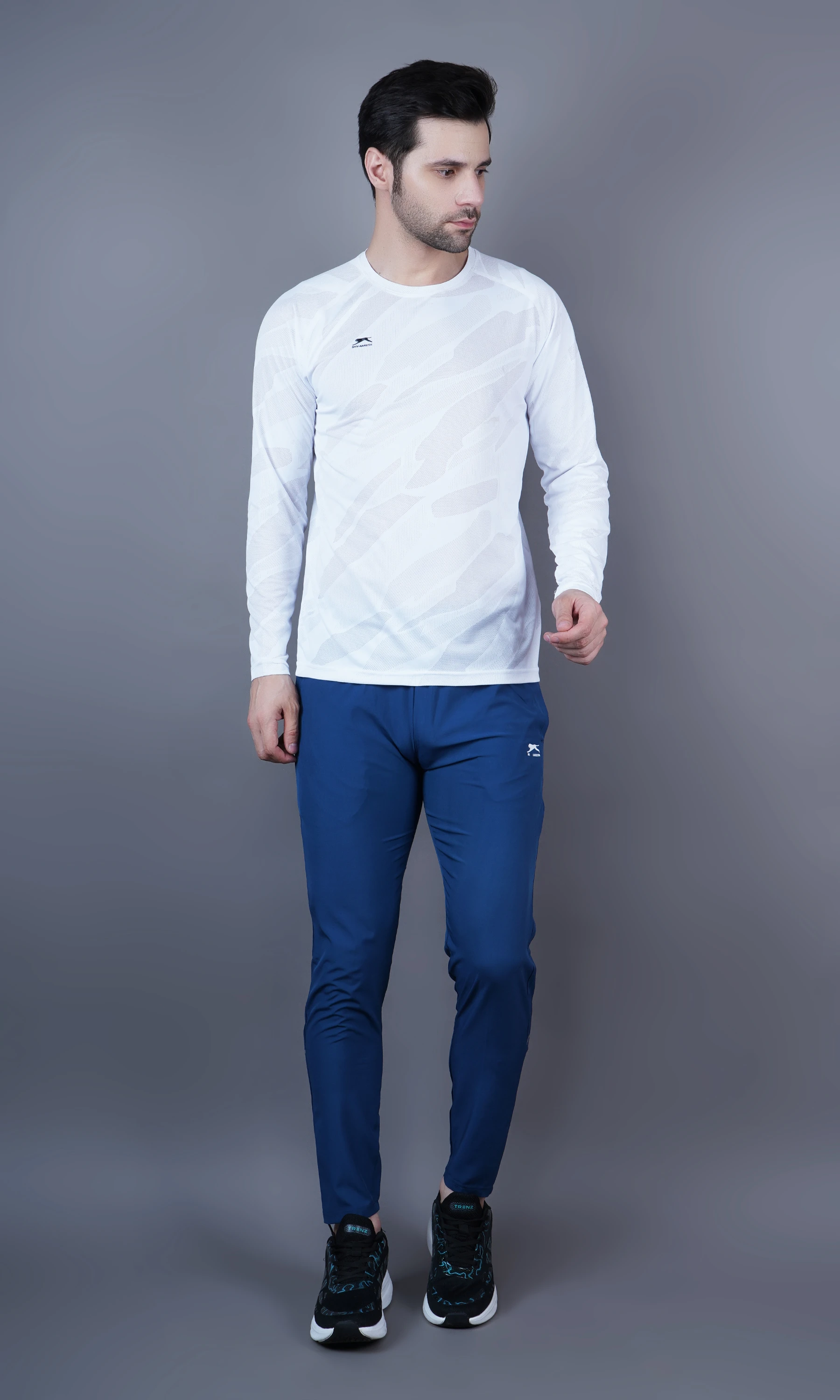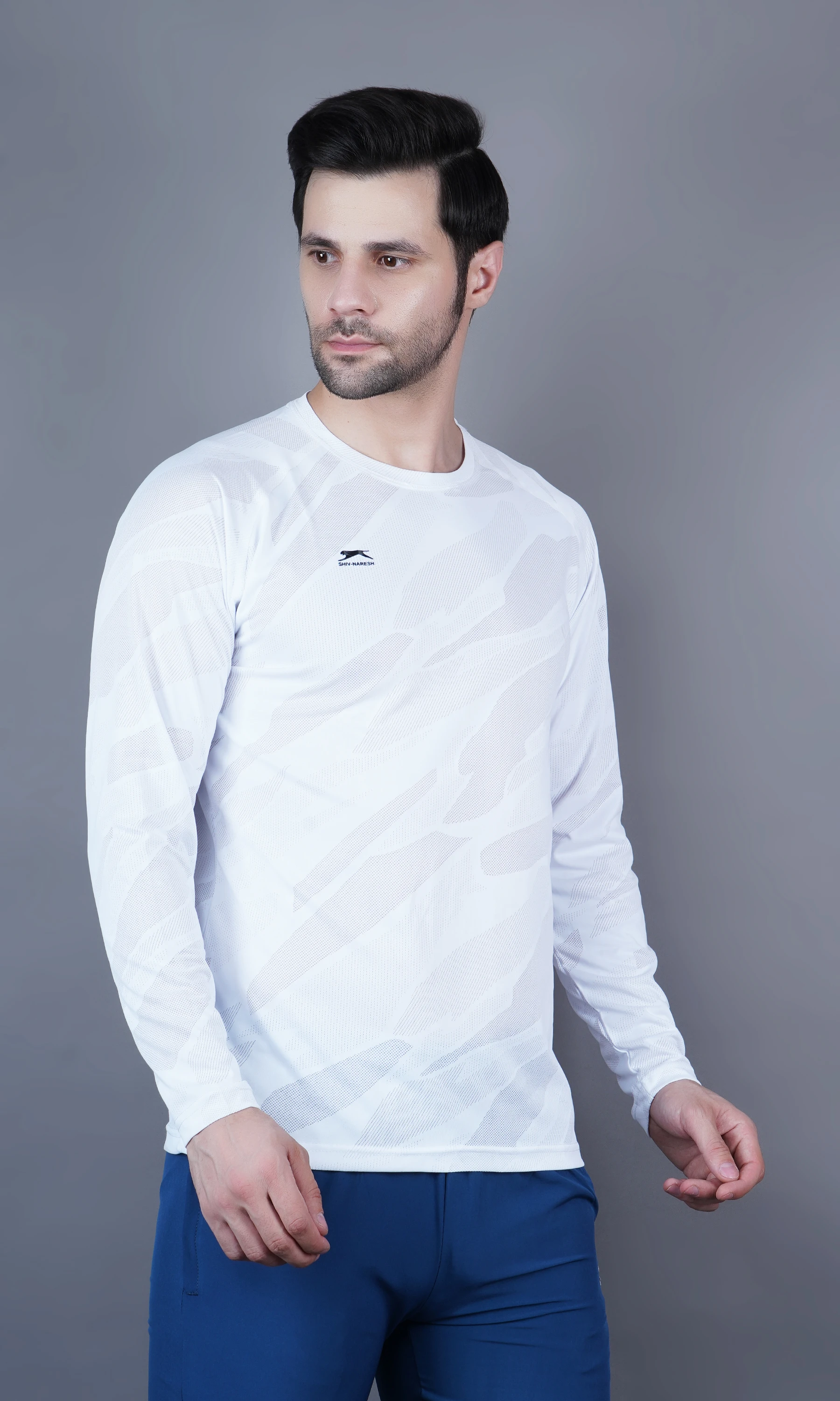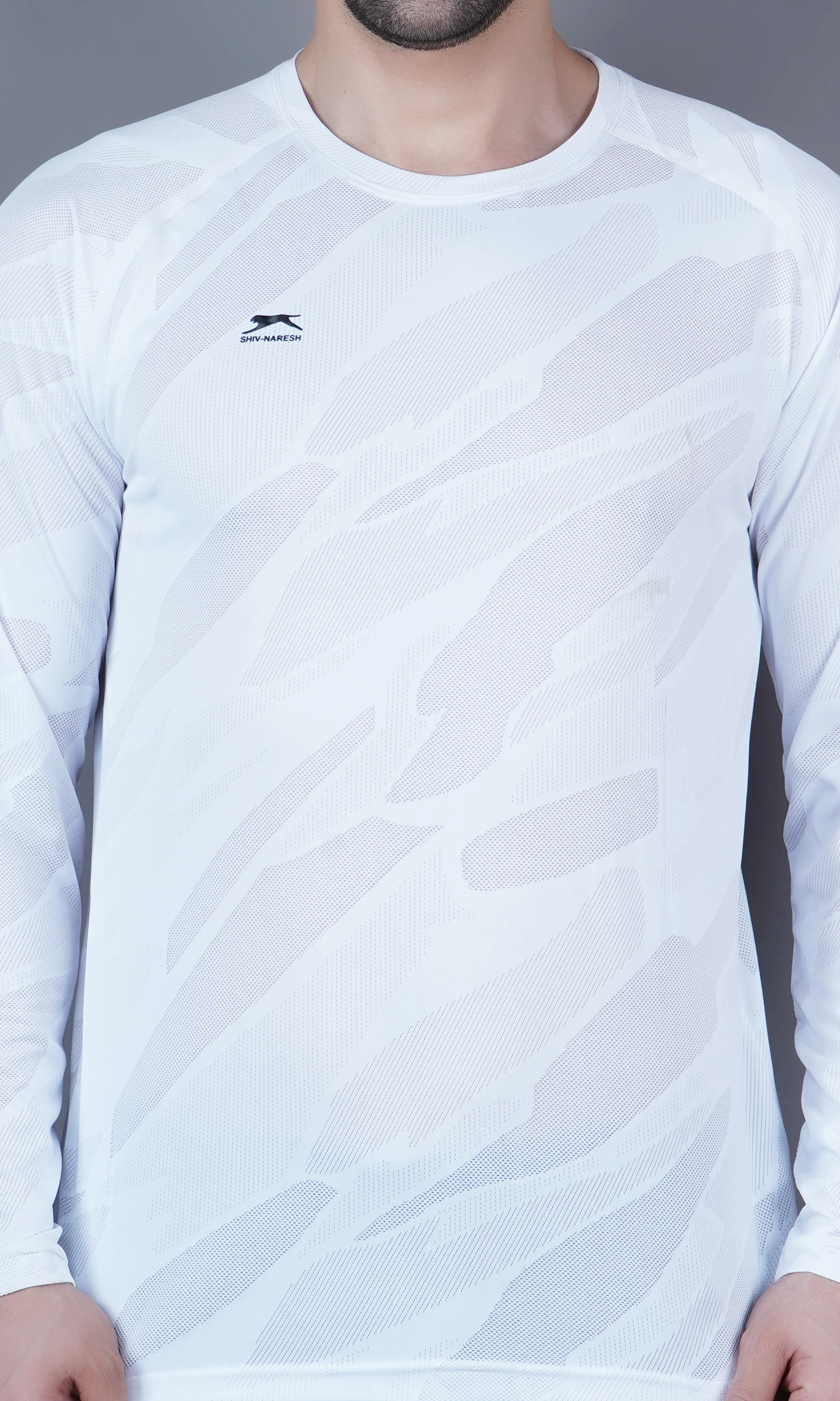 Stay comfortable and stylish with the Shiv Naresh Jacquard T-shirt, featuring a round neck and full sleeves for a sleek athletic look. Made with breathable jacquard fabric, this T-shirt offers a textured feel and moisture-wicking performance—perfect for workouts or casual wear.